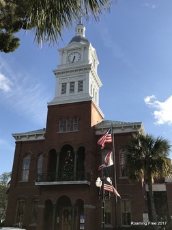 We spotted buzzards perched on top of the building, and a small alligator in the pond.
