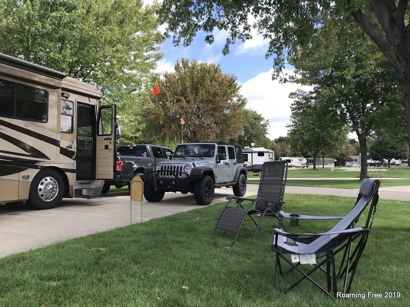 We lucked out, though, and didn’t have any rain until the last 15 minutes of the drive – we were catching up to it, and Tom tried to slow down, but we still had a few minutes of rain. We reached the RV Park, and by the time we finished checking in, the rain had moved off. Good timing!